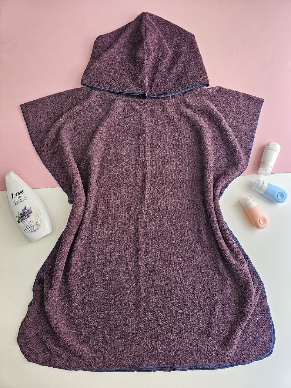 اگر بهدنبال یک پانچوی شیک، کاربردی و راحت هستید، پانچو حولهای بادمجانی رنگ ما بهترین انتخاب برای شماست. این پانچو با قد ۹۰ سانتیمتر و جنس حولهای نرم و جذبکننده، مناسب استفاده روزمره، بعد از استخر، حمام، یا در خانه است.