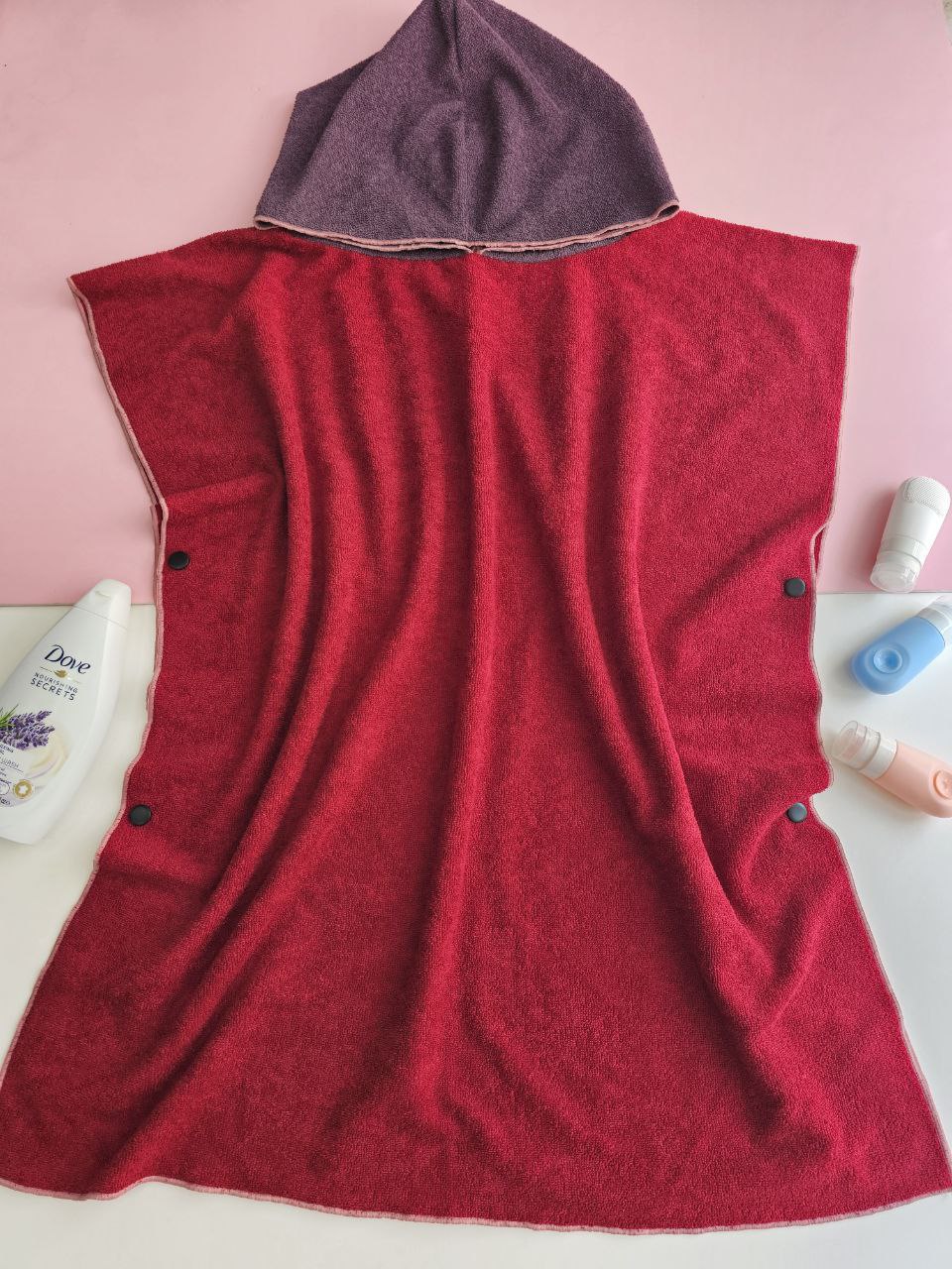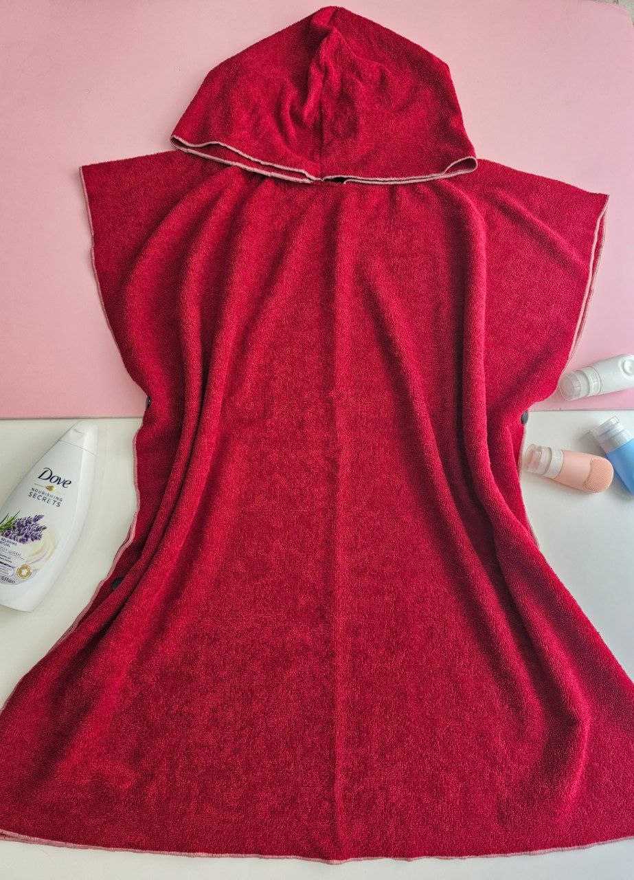 اگر بهدنبال یک پانچوی شیک، کاربردی و راحت هستید، پانچو حولهای آلبالویی رنگ ما بهترین انتخاب برای شماست. این پانچو با قد ۹۰ سانتیمتر و جنس حولهای نرم و جذبکننده، مناسب استفاده روزمره، بعد از استخر، حمام، یا در خانه است.