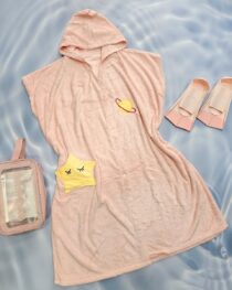 جنس این پانچو از حولهای با جذب بالا و بافت نرم تهیه شده و طراحی آزاد آن، استفاده از آن را بسیار راحت و کاربردی میکند.